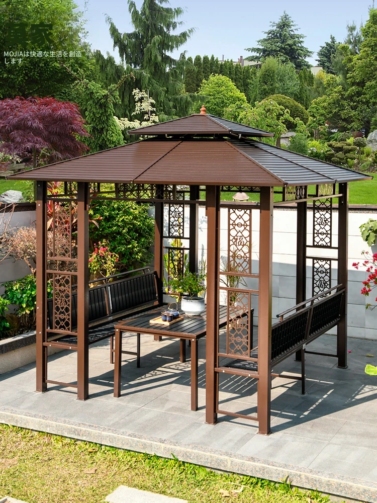 モ家アウトドアパビリオン 新中式デザインの別荘庭園用テント 日差しを遮るポリカーボネート製のオープンエアカフェ風テラスで、快適なひとときを楽しもう!